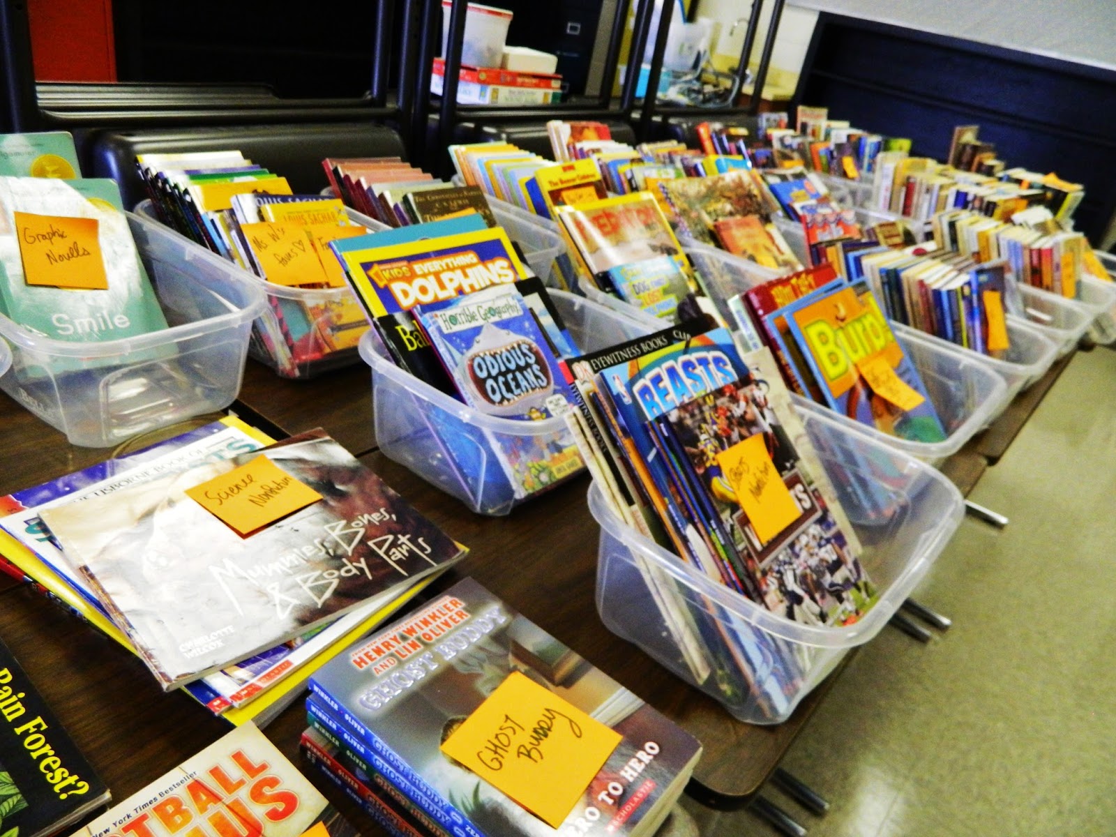 I am fairly certain the 5th grade team thinks I am never going finish organizing the books in my room. I have made SO many stacks alllllll over the room…it is like a literature maze…but really. Regardless, it is how the process works for me and I am happy to report the end is in sight! On Tuesday, my books looked like this…