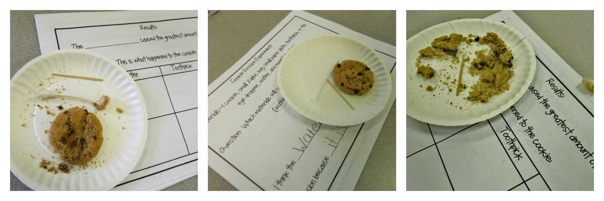 chip cookie, a plate, a toothpick, a q-tip, and water. Then, students predicted