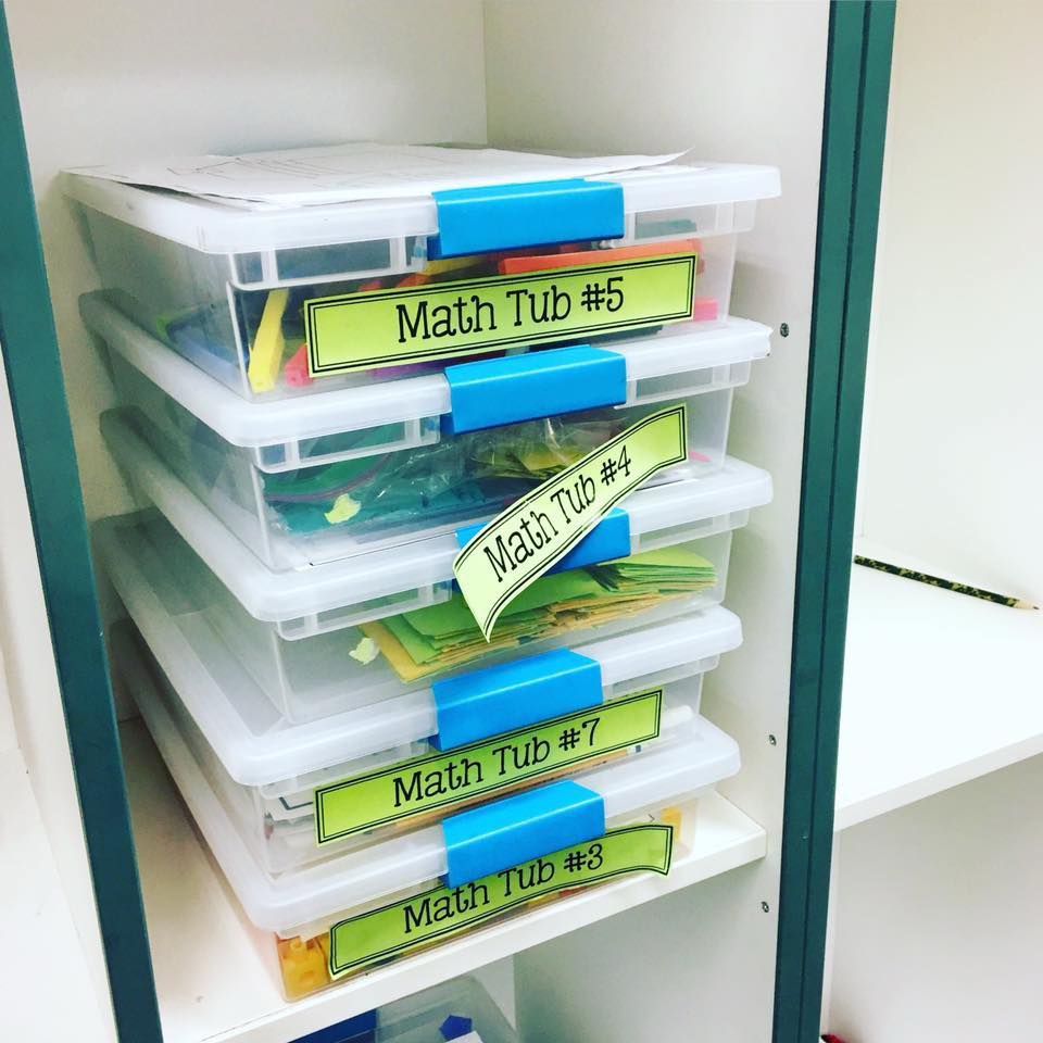 Wipe down and relabel supply bins, caddies, and drawers. Snag FREE math tub labels here and morning tub labels here.
