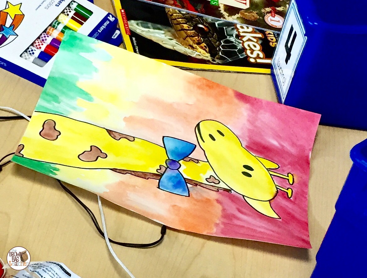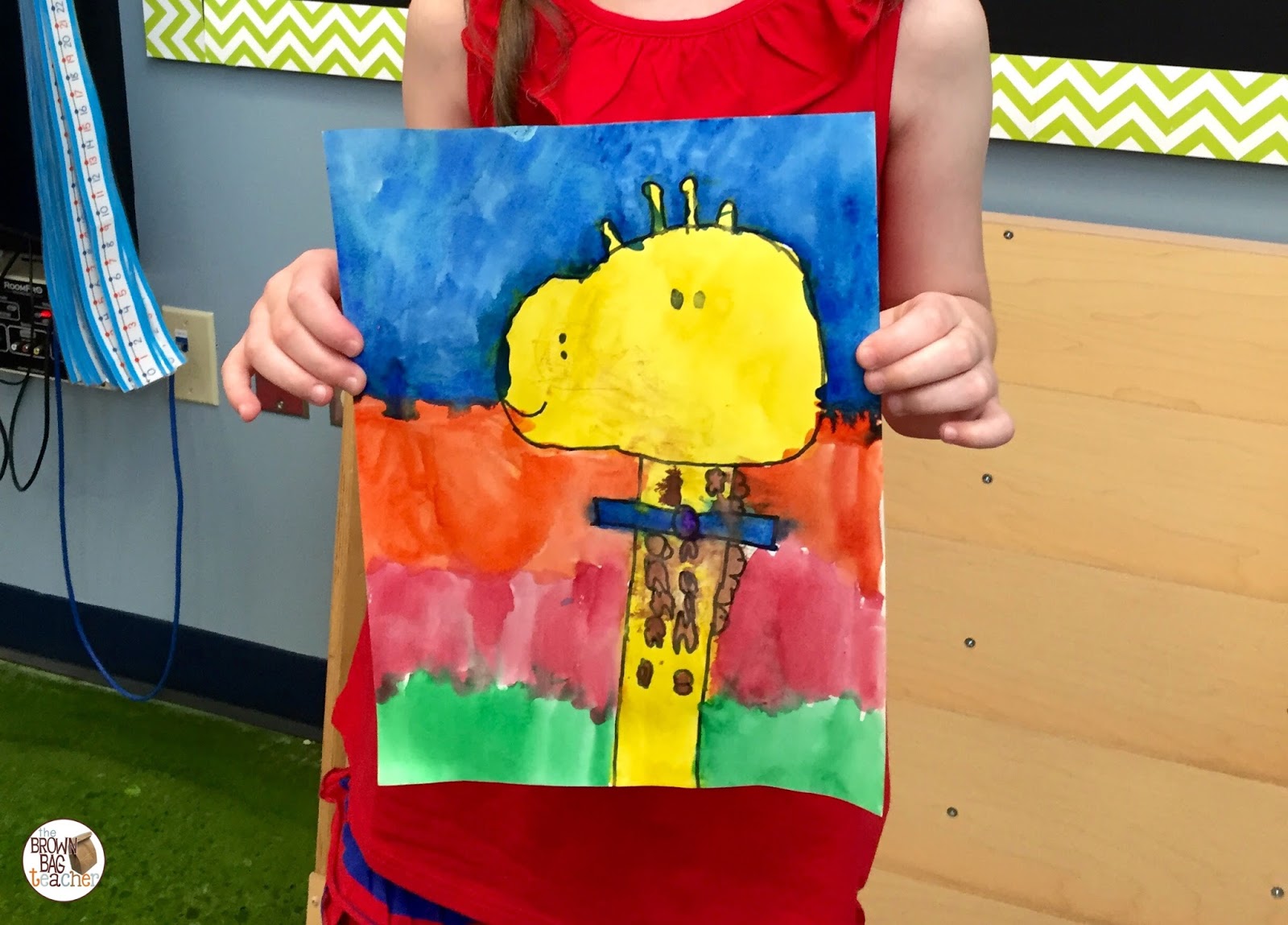 When students are finished erasing, they must turn in their sharpie before opening their watercolors. I *know* this seems like a lot of “rules” but using watercolors is a lot of freedom to have and it could get crazy quickly. Thankfully, with set procedures, my friends THRIVE and absolutely love our art time.
