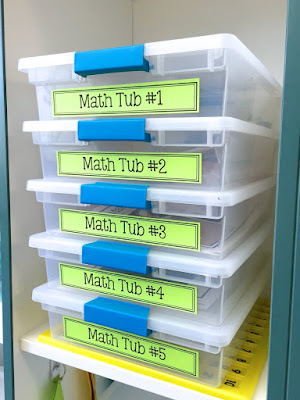 The whole premise behind Guided Math is that students are working in small-groups on specific skills they struggle with. When students are working, they are interacting with hands-on materials that allow them to make sense of the math. They aren’t working on worksheets or busy work. They are using base ten pieces, unifix cubes, cuisenaire rods, double-sided counters, foam shapes, etc. So, in order to make Guided Math work, you need concrete manipulatives. Hopefully, your district has always provided these basics so you don’t have to invest in them. We can’t skill ahead to the semi-concrete or abstract too fast!