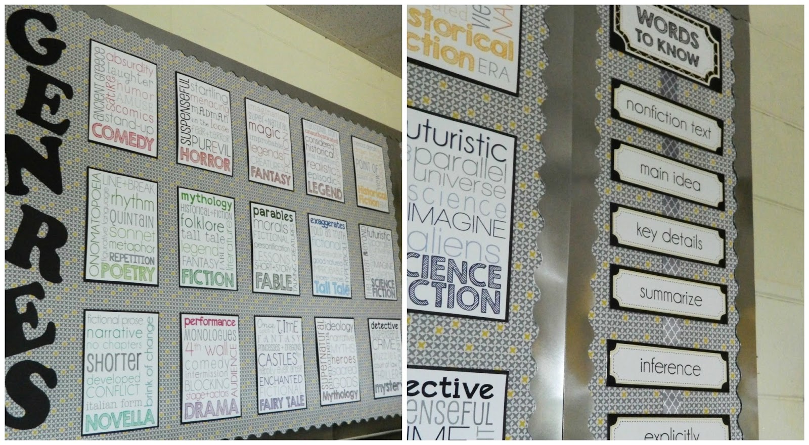 This area of your room looks awesome! I love the Genres board and your library looks super organized. I can't believe your 5th graders don't go to the library!!!