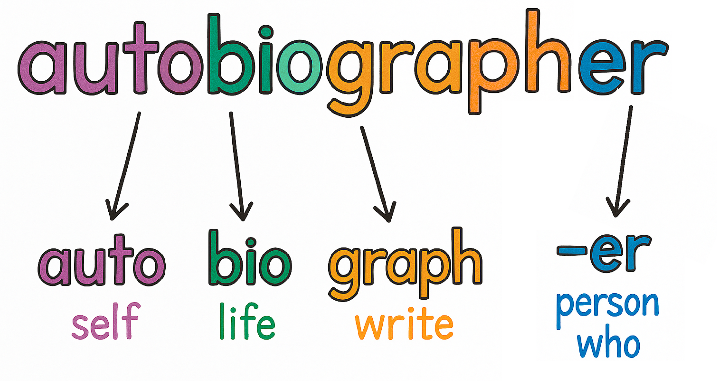 Even if a student has never seen the word, they can reason: autobiographer is a person who writes the story of their own life. That’s the power of morphology.