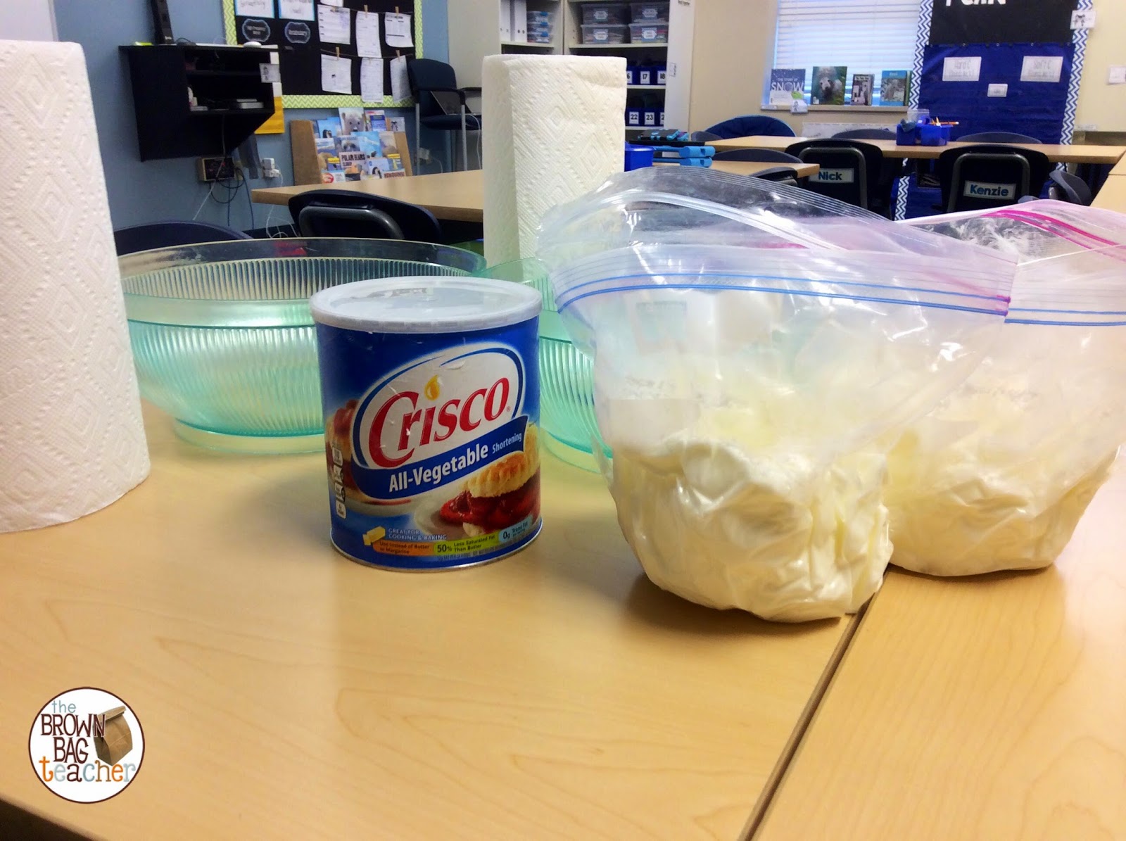 Throughout the week, we were amazed at just how cold the North and South Poles can get. Living in Kentucky, it’s incredibly difficult to imagine what -76 degrees feels likes, and even more difficult to imagine living there. Over and over, I heard – how can animals live in such cold places?? Therefore, a blubber experiment was in order! To make the experiment manageable, a parent volunteer joined our class, so we could split into 2 groups. Thank goodness for volunteers!